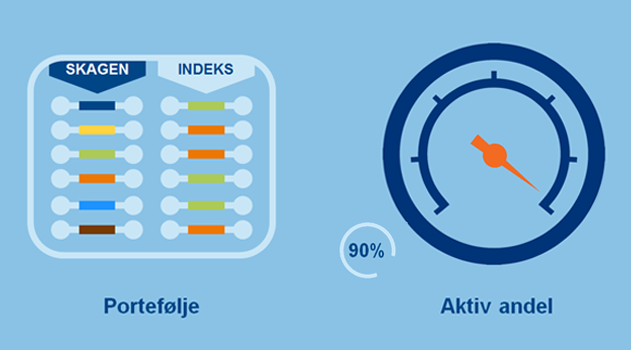 SKAGENs aksjefond er aktivt forvaltede fond. De har alle en aktiv andel over 80 prosent. Fire av fem aksjefond har slått sine referanseindekser med god margin, siden oppstart. Det har imidlertid vært år der indeksen har prestert bedre, men over tid har den aktive forvaltningen i SKAGEN vært lønnsom for investorene.
