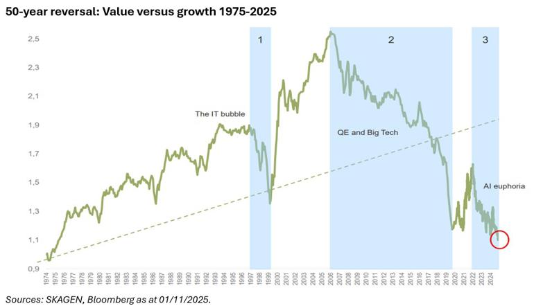 [2] Sources: SKAGEN, Bloomberg. MSCI All Country World and MSCI All Country SMID indices as at 01/11/2025.