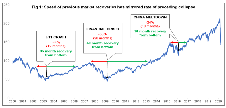 While predicting when the stock market will hit rock bottom is impossible, looking at previous crises could help to gauge the potential speed of its recovery from the coronavirus and assess how our funds might be expected to perform once momentum is gathered.